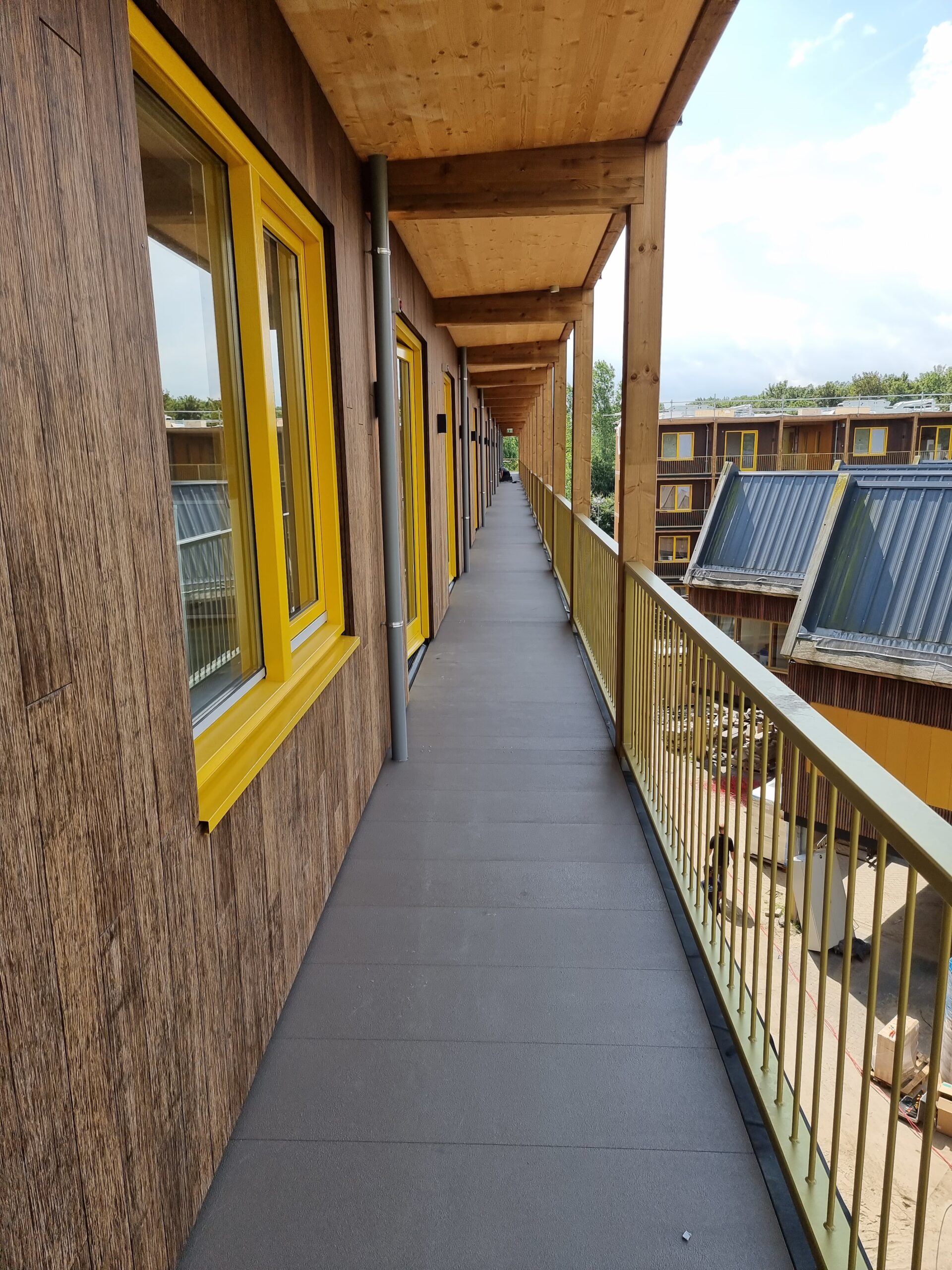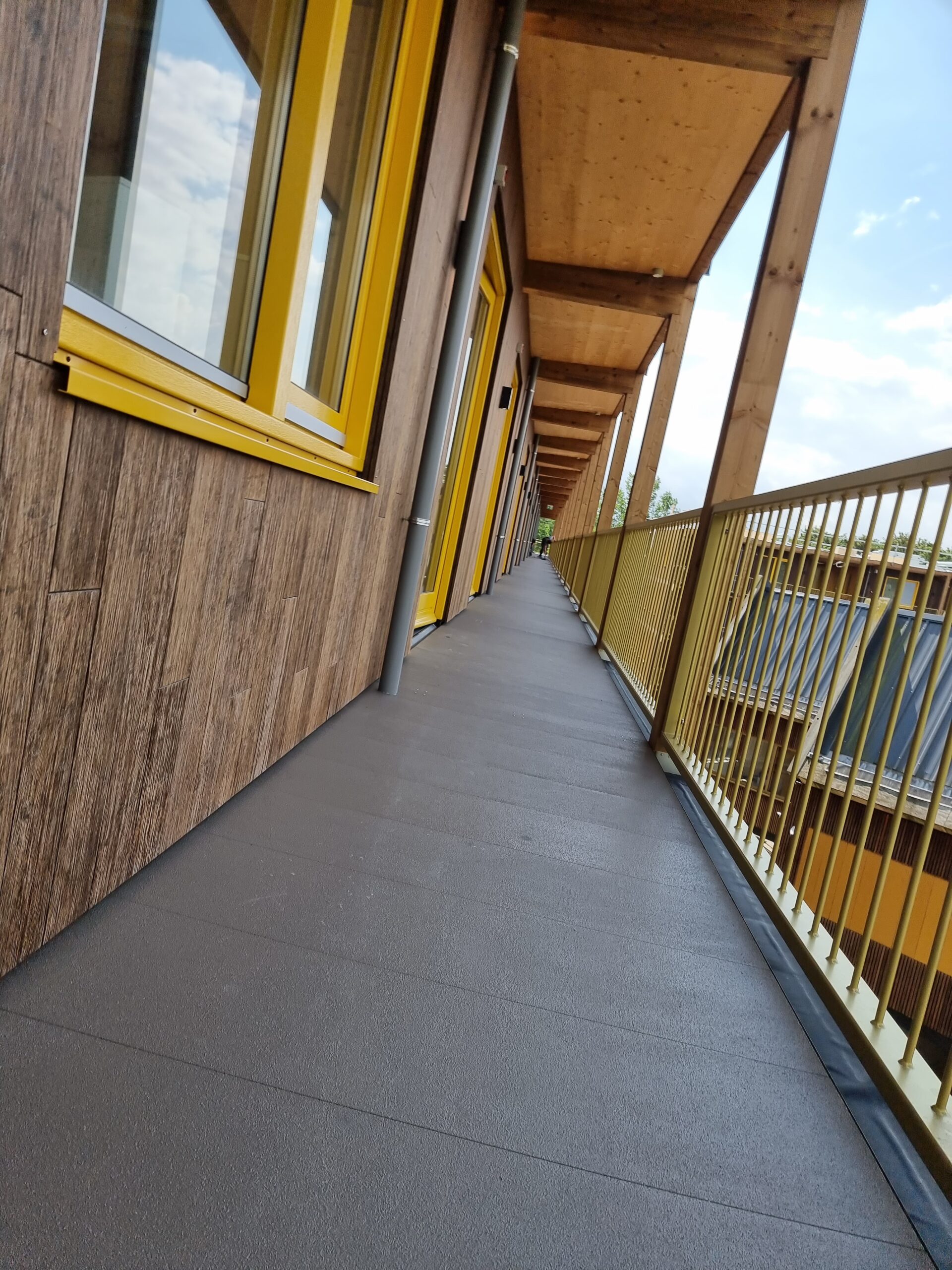 Dennis van Lith vertelt van FLETTS over zijn keuze voor FiCor. “Bij de uitwerking van het project liepen we tegen een uitdaging aan. De buitenzijde van de galerij is natuurlijk zoveel mogelijk opgetrokken uit hout, maar de loopvlonders krijgen een boel te verduren. Het hout en EPDM moest beschermd worden, en de beschermlaag moest slijtvast, anti-slip en natuurlijk het liefst onderhoudsvrij worden.”