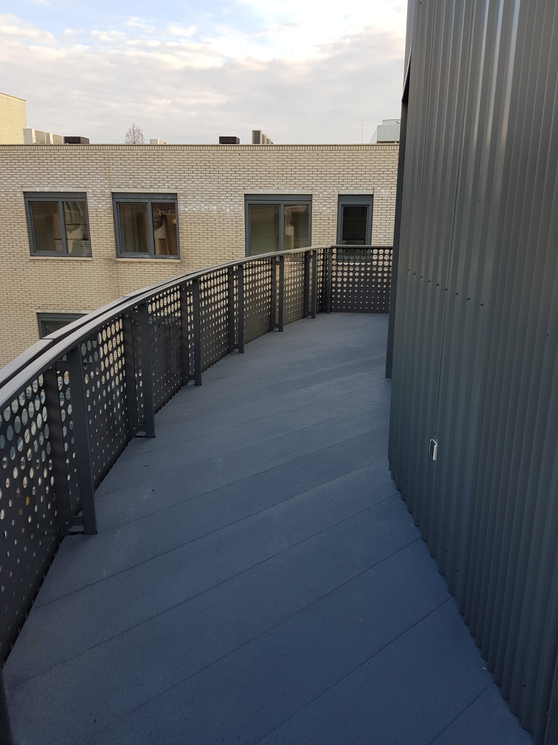 Het systeem werd specifiek gekozen voor zijn waterdichte eigenschappen en de uitstekende anti-slip werking, die essentieel zijn voor de veiligheid van de bewoners, vooral tijdens natte of winterse omstandigheden. Het nieuwe vlondersysteem is eenvoudig te onderhouden, wat zorgt voor lagere onderhoudskosten op de lange termijn en een verhoogd woongenot voor de bewoners.